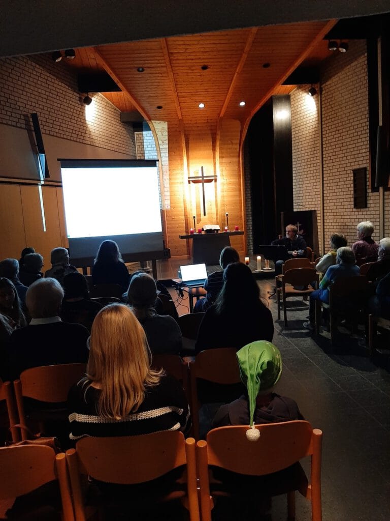 Am 16. November, dem vorletzten Sonntag im Kirchenjahr, feierten wir einen besonderen Gottesdienst im Zuschaltraum. Wir saßen alle an einer langen Tischreihe und konnten so vor uns auf dem Tisch die Bibel legen.